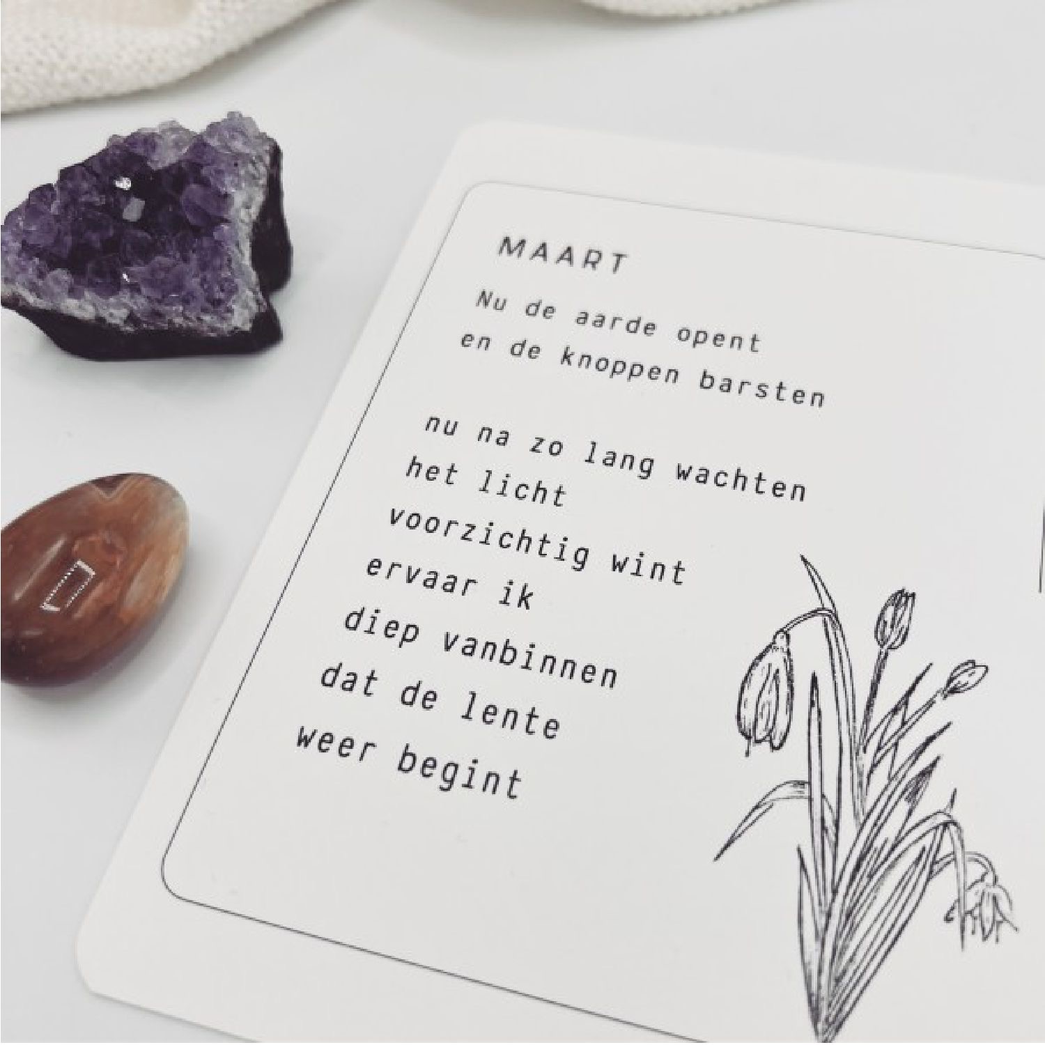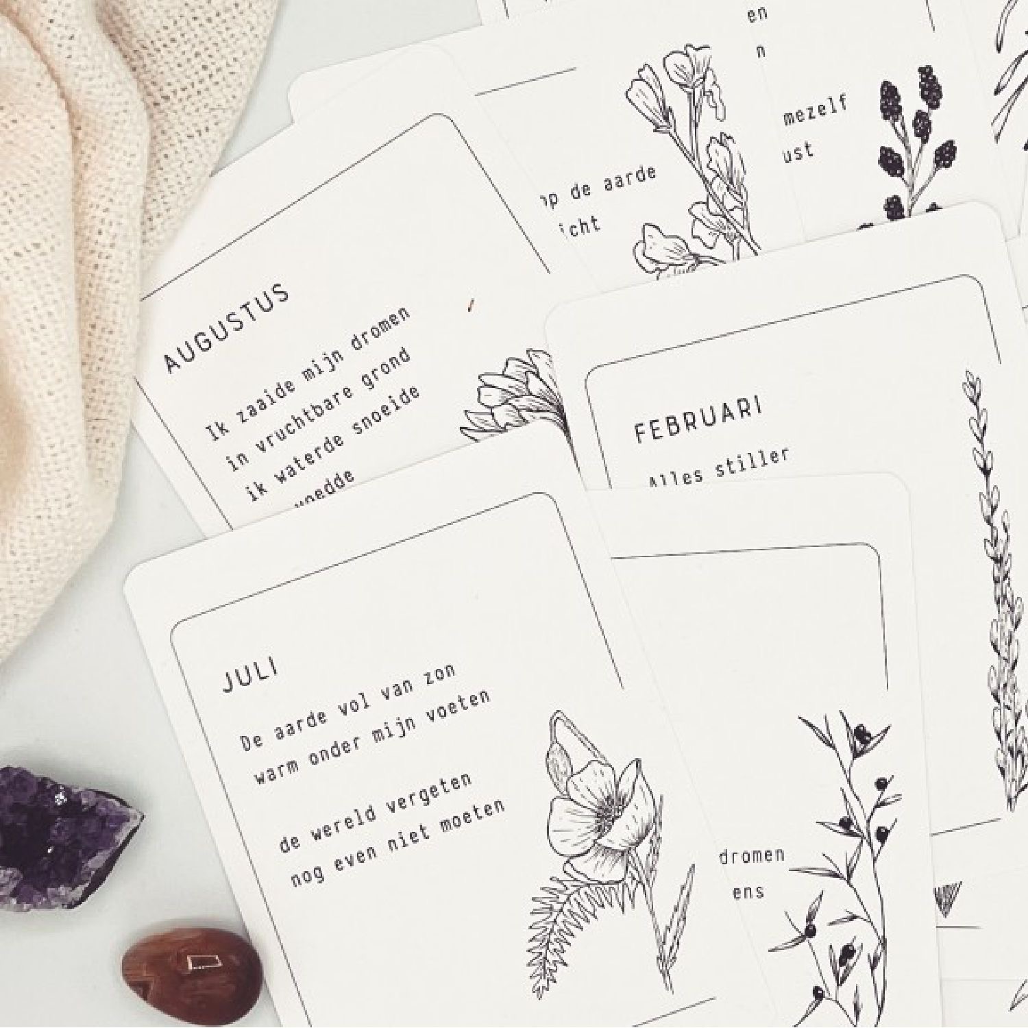 Op deze 12 maandkaarten staat op elk een mooi gedichtje. Hierdoor sta je elke maand even stil en kom je dichter bij jezelf.