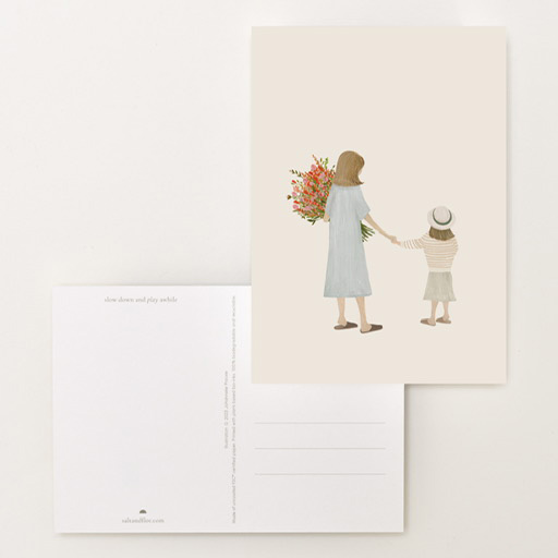 De wenskaart bloemenmoeder, van Sâlt + Flor, is een echte allemansvriend. Een kaart die je voor veel gelegenheden kan gebruiken, zoals bijvoorbeeld voor een (kinder) verjaardag. Hij is verbindend en altijd goed. Hij past goed bij een mooi cadeau. Of nodig iemand uit voor een fijn pluktuin. Natuurlijk is de kaart bij uitstek geschikt om te versturen. Ook ingelijst is het een heerlijk beeld en past hij goed in de kinderkamer.