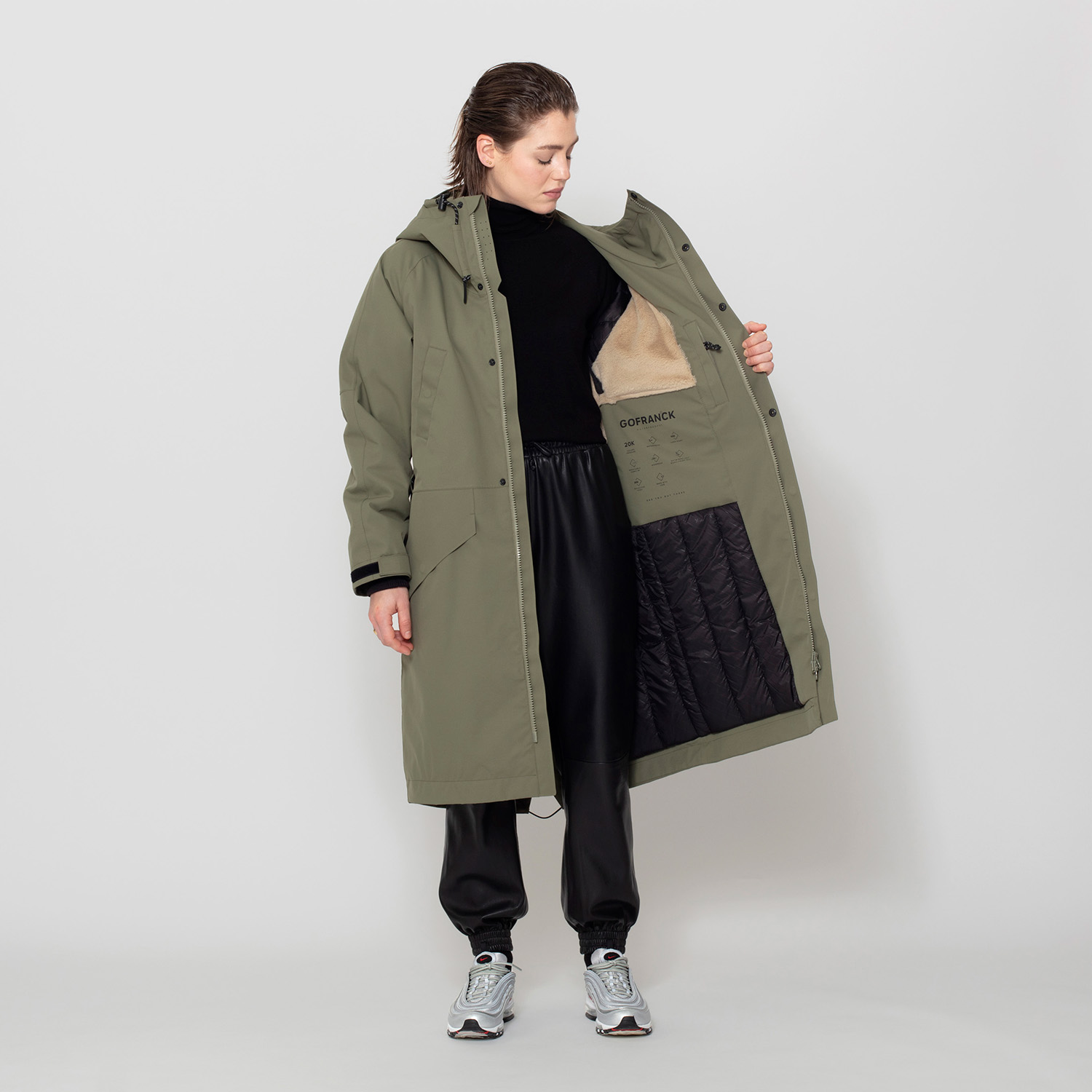 Het kiezen van duurzame materialen en afwerkingen voor de jassen is essentieel in elk ontwerp. Elke GOFRANCK is diervrij en gemaakt van hoogwaardige, gifvrije materialen + afwerking die lang meegaat.
