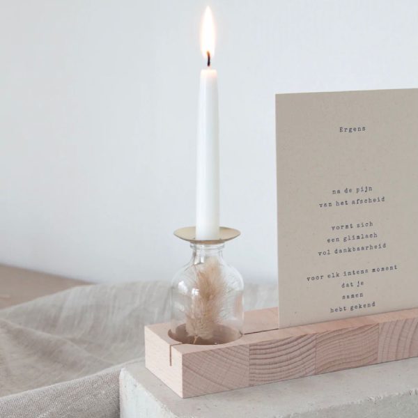 Een mooie goude druppelvanger voor de kleine “Hold it” kaarsjes van het label Roosmarijn Knijnenburg. Zo maak je jouw pronk plekje helemaal af! Geef deze een mooi plekje op beukenhouten houder Hold it, ook van Roosmarijn Knijnenburg.