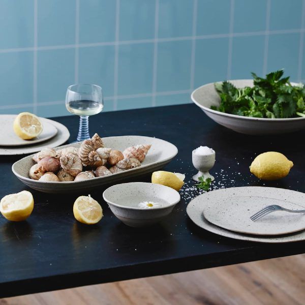 De Grainy Salad Plate Sand, van het label Nordal. Het serviesgoed van deze collectie is goed voor dagelijks gebruik, maar zeker ook in een mooiere setting waarin je kunt mixen en matchen met het andere servies van Nordal.