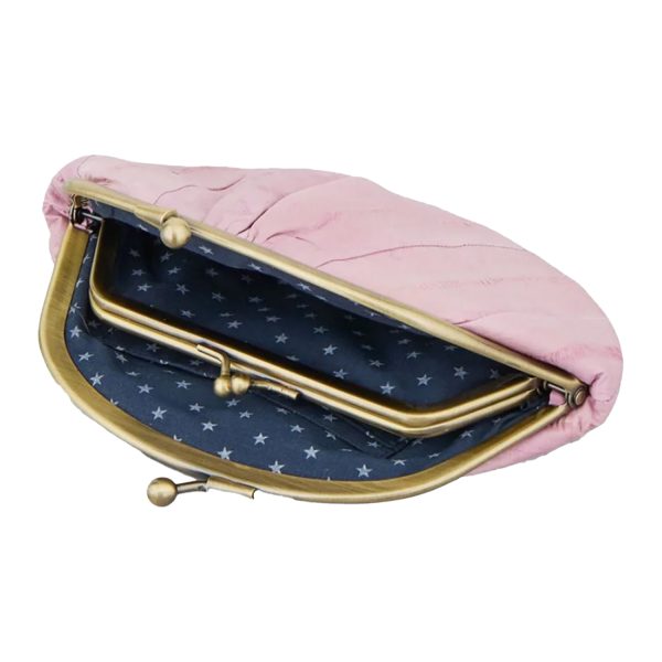 De Granny Purse in de kleur Dusty Rose van het Deense label Becksöndergaard heeft een luxe en ouderwetse charme. Met een compact formaat van 19 x 11 cm biedt deze stijlvolle portemonnee precies genoeg ruimte voor al je belangrijke pasjes en muntgeld, terwijl hij toch elegant en handzaam blijft.