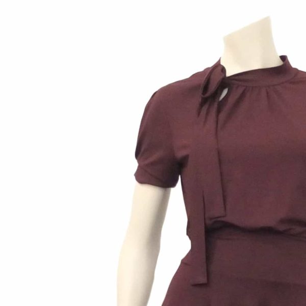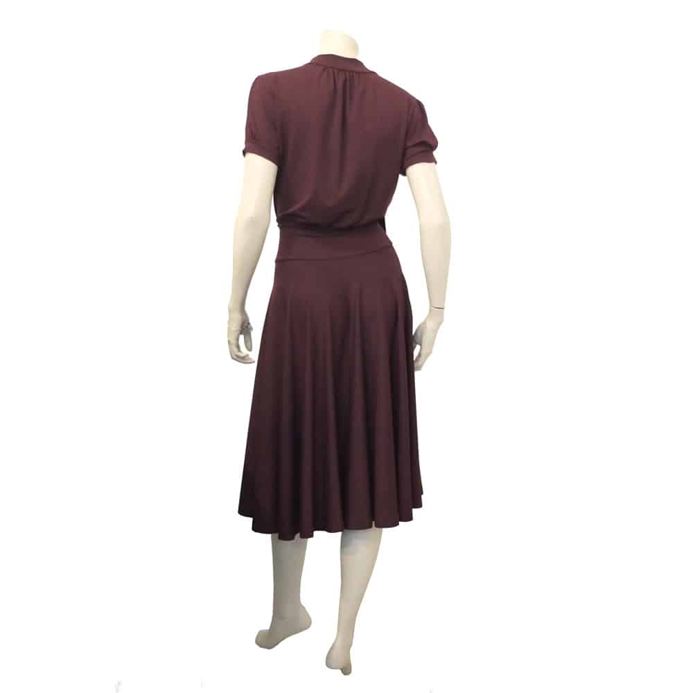 Retro jaren ’50 model met brede strikhals en een hele cirkelrok tot over de knie.