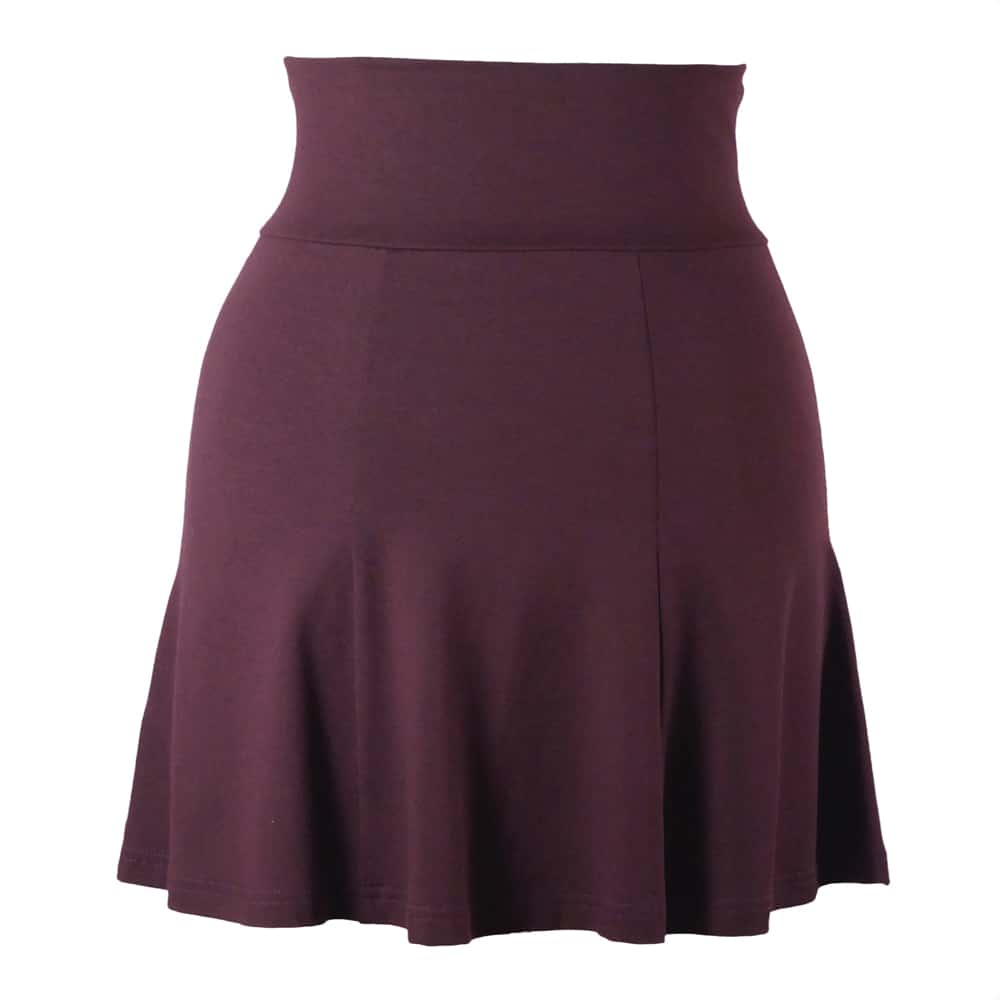 De iets kortere variant van de 2 korte banenrokjes, hier in een mooie diepe kleur aubergine.