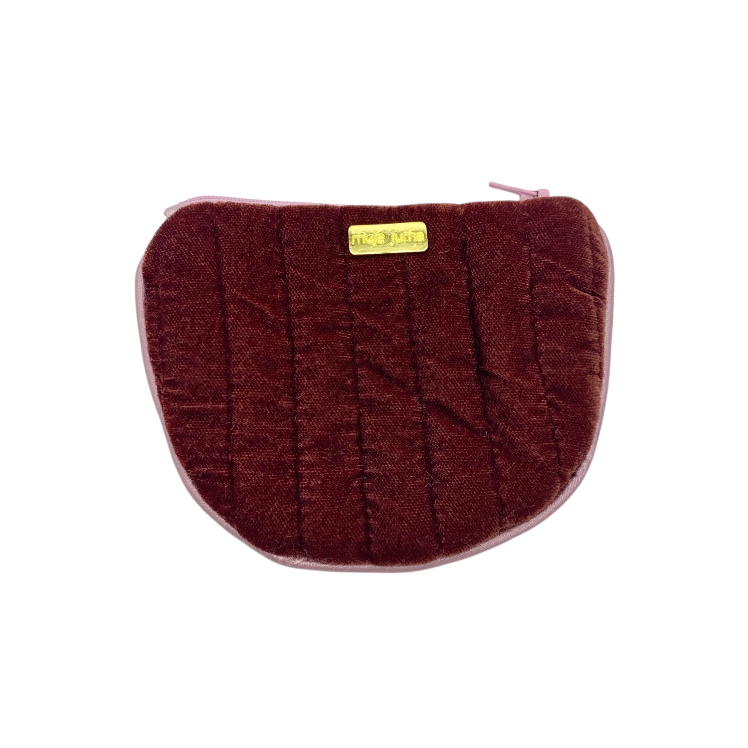 Deze kleine jewelry pouch van Muja Juma in de kleur burgundy is ideaal voor al je kleine essentials. Het velvet tasje heeft een roze satijnen rand met een rits in dezelfde kleur. Perfect om je make-up of sieraden in te bewaren.