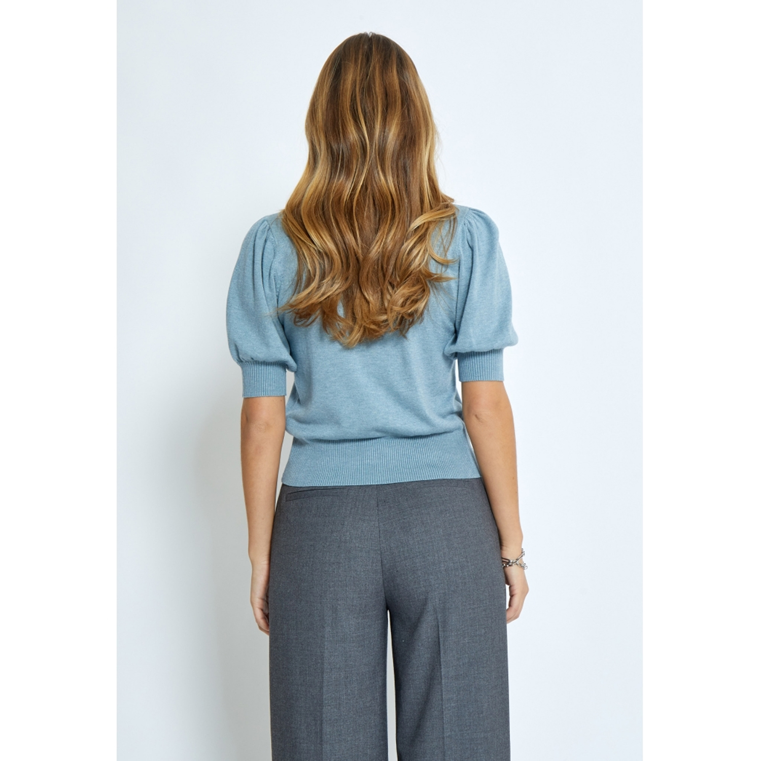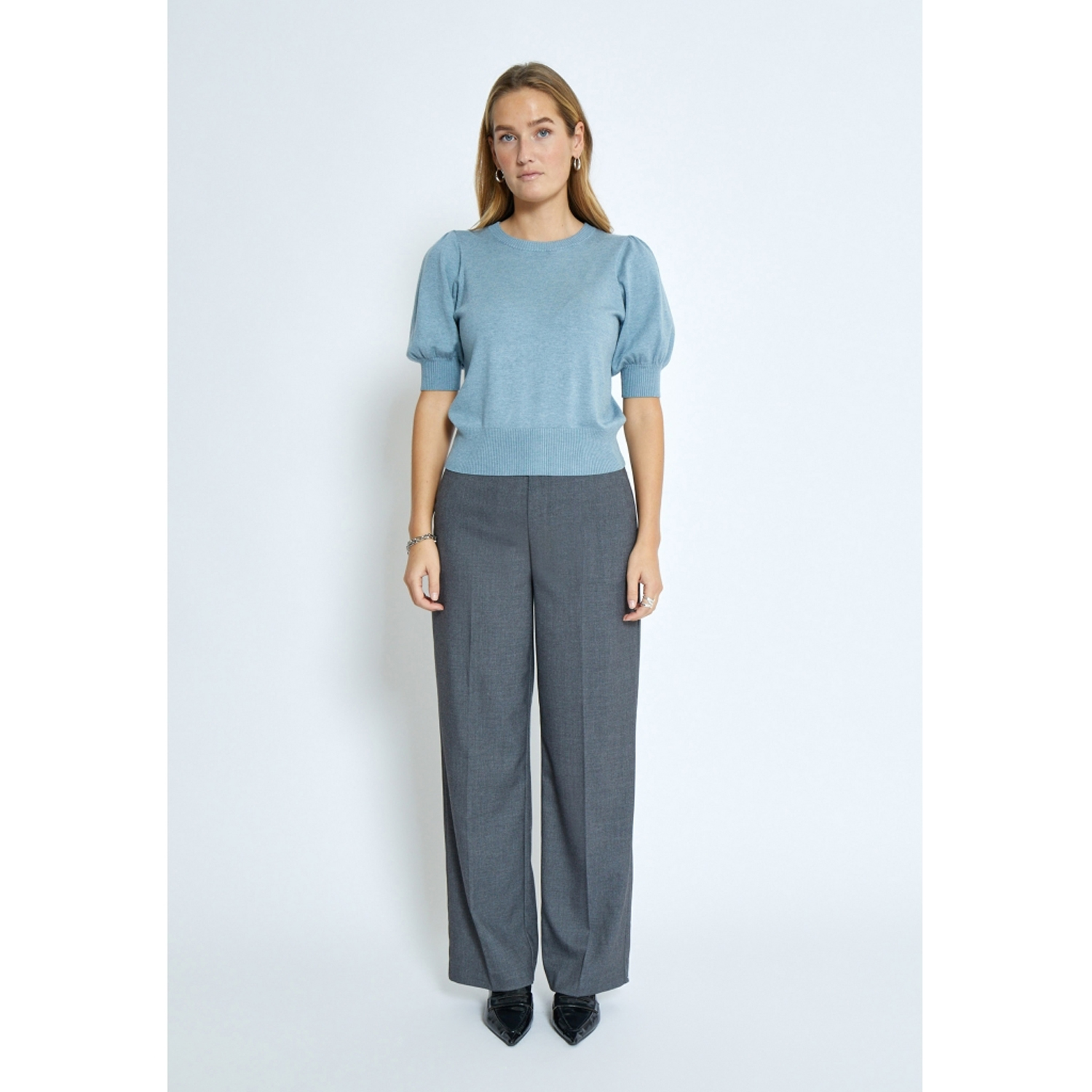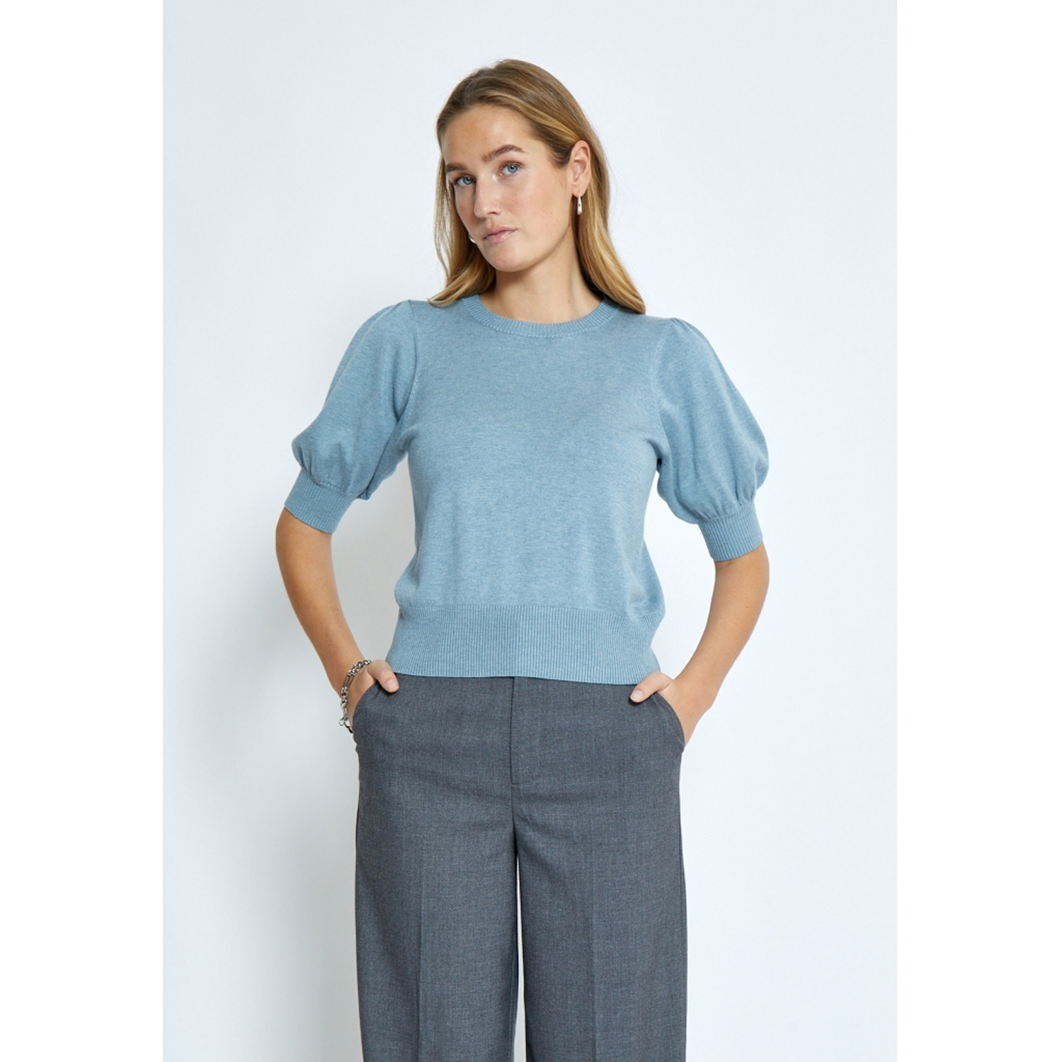 De Liva Knit Tee in de kleur Citadel Blue Melange, van het Deense label Minus. Het shirt is gebreid van een duurzame EcoVero viscose en is een heerlijk basis shirt wat altijd goed zit. Het ontwerp omvat een ronde halslijn en elegante korte pofmouwen tot aan de elleboog. Dankzij de iets strakkere boord op de heup krijgt het shirt een subtiel bloezend effect rond de buik, ideaal voor wie wat discretie wenst.