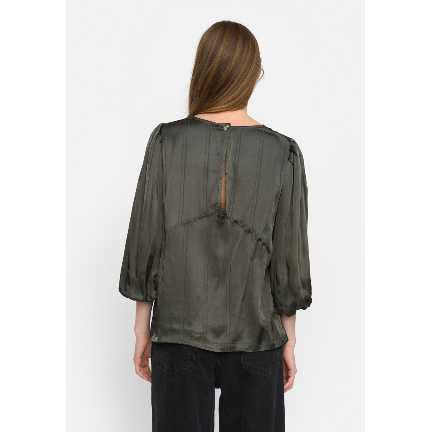 De Madelyn Blouse in Striped Jacquard Kambaba, van het label Soft Rebels, is een comfortabele en elegante top. De ronde hals, speelse 2/3 ballonmouwen en subtiele, decoratieve lijnen zijn de prachtige details van dit verfijnde bovenstuk. De delicate uitsparing op de rug, onder de knoopsluiting, draagt ook bij aan het elegante geheel.