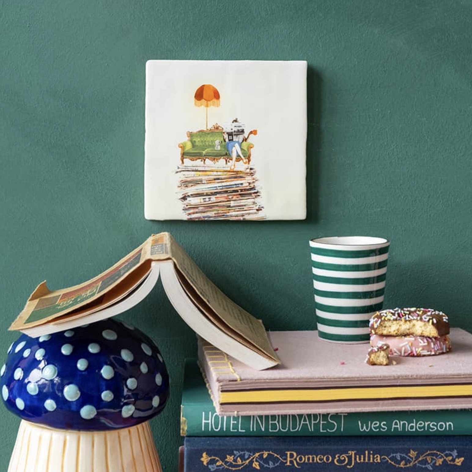 StoryTiles maakt kunst op tegels. Elk design heeft een grappige twist, waarin klassieke concepten contrasteren met modern elementen. De miniatuurvehalen worden ontworpen door beeldend kunstenaar Marga van Oers. Zij geeft elke tegel een nieuw leven met haar unieke, gedetailleerde en humoristische collages. Ook werkt Storytiles regelmatig samen met andere illustratoren en kunstenaars.