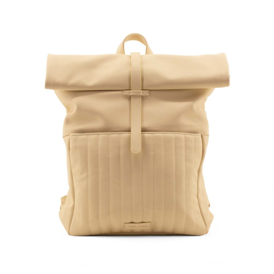 Herb backpack in de kleur Milk van Monk and Anna is een mooie rugtas gemaakt van een mat ‘vegan leather’ in beige. De binnenkant is afgewerkt met een ‘washed linen’. Dit nieuwe model van Monk & Anna heeft een voorvak met geribde structuur, wat net een stoerdere uitstraling geeft!