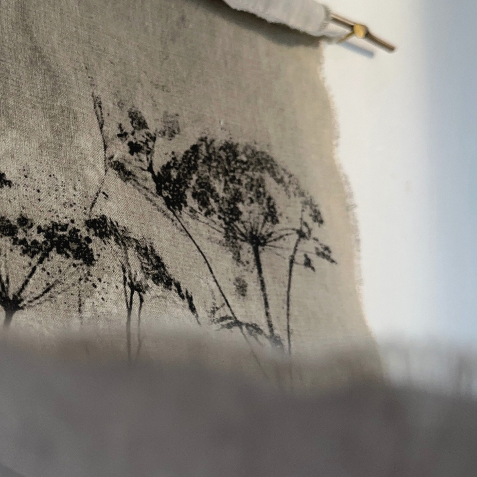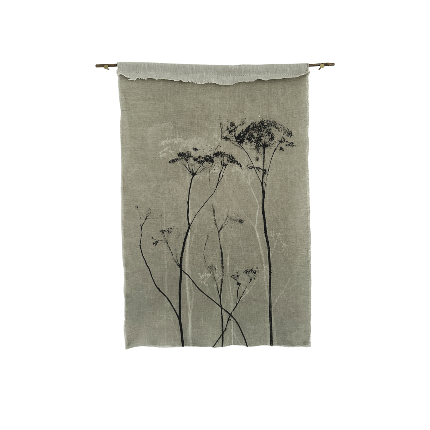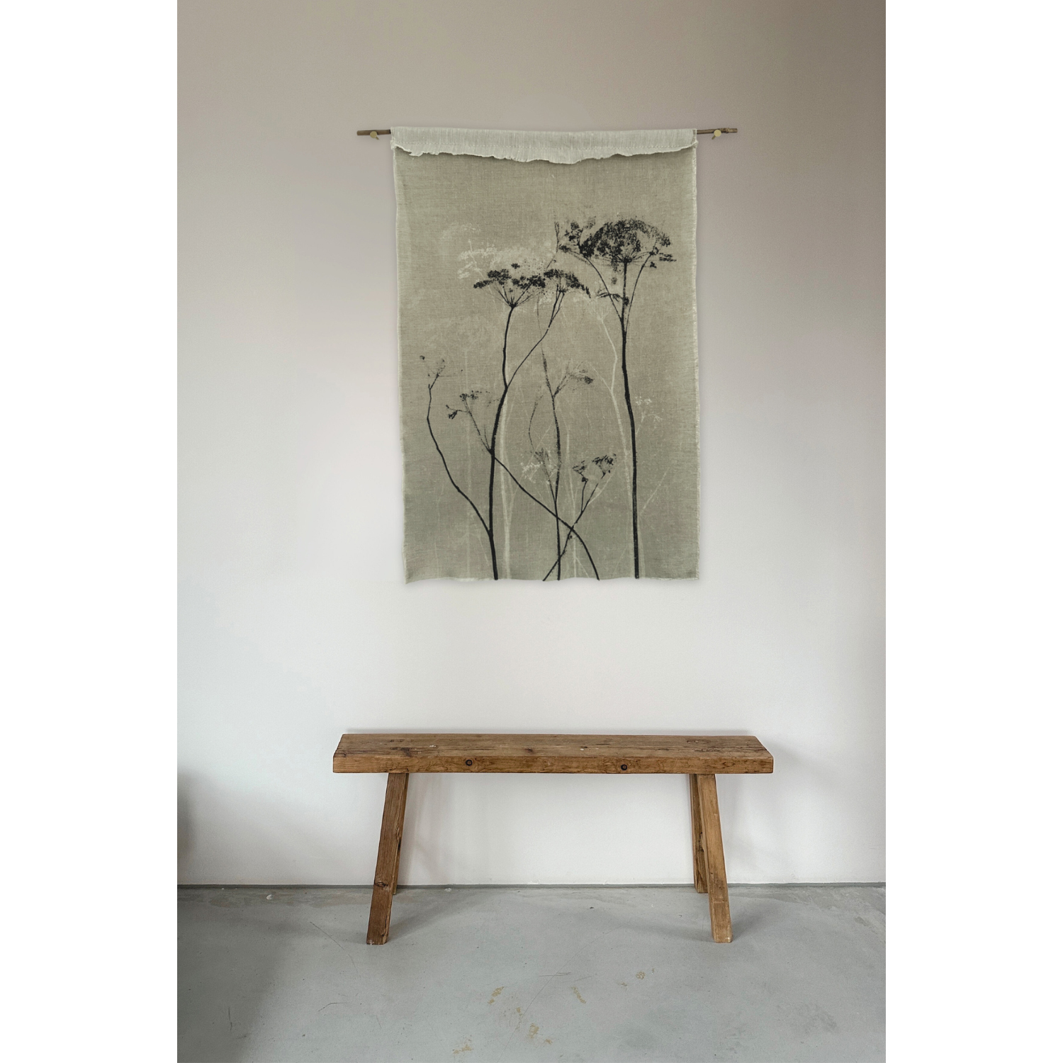 Het Mysterium Greyish Mint Wandkleed, van het label Blooming Label, is een delicaat botanisch wandkleed en vangt de stille poëzie van de natuur, waar fijne stengels en wilde bloemen elegant naar het licht reiken. Het wandkleed is gedrukt op zacht linnen, en deze natuurlijke textuur voegt een aardse, warm, karakteristieke uitstraling toe aan je ruimte.