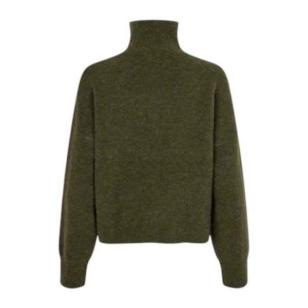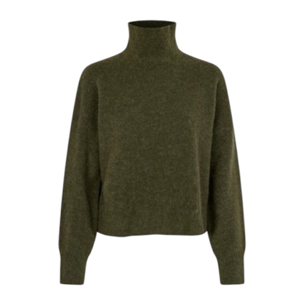 De Nola t-n in de kleur Deep Forest, van het label Samsøe Samsøe, is een stijlvolle trui met col en verlaagde schouders. Hij is vervaardigd uit een hoogwaardige mix van wol, met onder andere alpacawol. Deze wol staat bekend om zijn zachte feel en luxe uitstraling. De Nola t-n is dus perfect voor de koudere herfst- en winterdagen.
