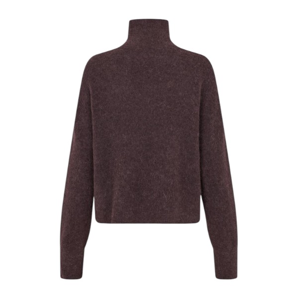 De Nola T-n Fudge Melange van Samsøe Samsøe is een verfijnde bruine dames trui die comfort en elegantie perfect combineert. De zachte Fudge Melange tint geeft dit kledingstuk een warme, moderne uitstraling.
