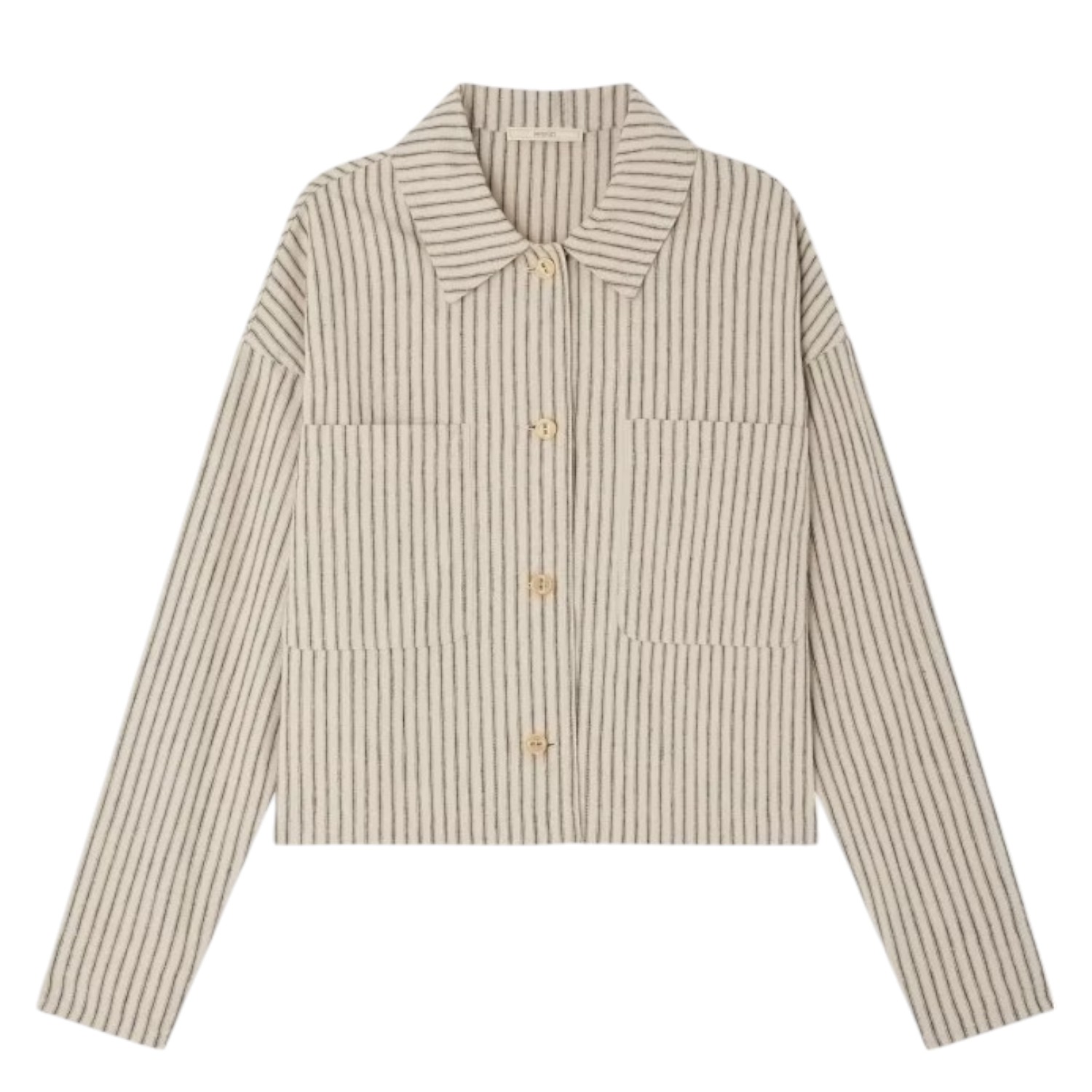 Het Notteri Overshirt in de kleur Sandblack van Sessùn is een stijlvol overshirt met patch pockets, gemaakt van een rustieke stof met twee-tone zephyr strepen. Het heeft een tijdloze en casual uitstraling.