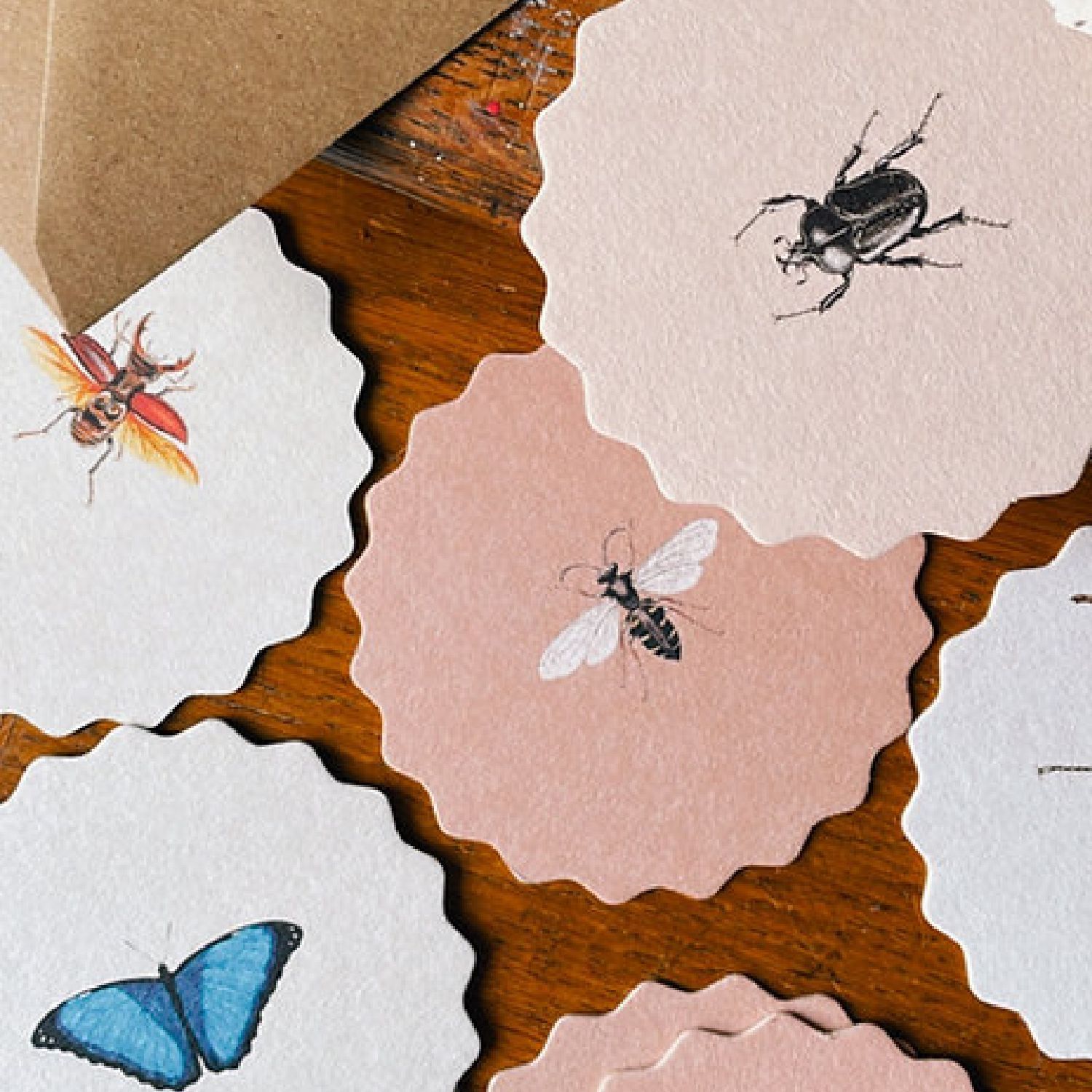 Deze set met 10 stervormige onderzetters van Michaela Schwarzer zijn aan beide zijdes bedrukt met leuke illustraties van insecten. Je kunt ze natuurlijk als onderzetters gebruiken om je glas op te zetten. Maar de onderzetters zijn ook erg leuk om aan de muur te hangen of om als kaartje te gebruiken bij een cadeautje. Ze zijn gemaakt van gerecycled papier.