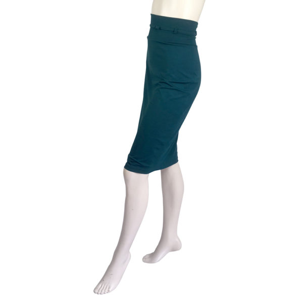 Deze kokerrok draag je hoog in de taille als in de jaren ’40. De rok heeft in de taille een bijpassend smal ceintuurtje. De lengte is net iets over de knie. Erg mooi ook met de striktop in dezelfde kleur, het lijkt dan samen een jurk.