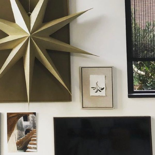 Bijzondere mini-poster van het Zutphense label NA Design. Deze gedroogde mistletoe is meegenomen in het handgeschepte papier en met een gouden kruisje vastgezet. Door het handmatige karakter is elke poster anders.