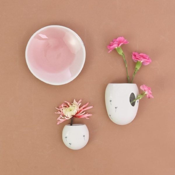 De recycle vaasjes zijn ontworpen om kleine stekjes van planten in te laten bloeien. Deze hangen mooi in een groepje op de muur. Kleine vetplantjes, tillandsia’s en mini cactussen maakt de vaasjes echt af. Â De vaasjes zijn aan de binnenzijde altijd geglazuurd, zodat je er ook water in kunt doen voor een bloempje uit de tuin of berm.