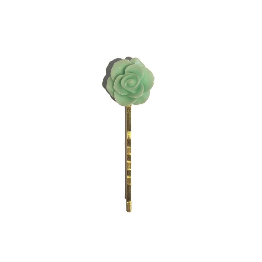Leuke haarspeld met een turquoise roos op een gouden haarspeldje. Schattige voor bij elke outfit!