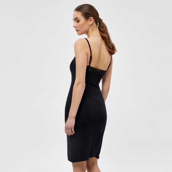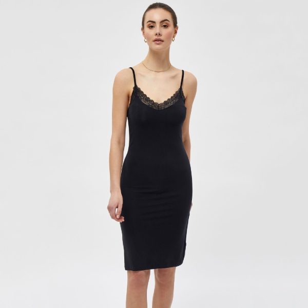 De Rosalinda Lace Dress in de kleur Black, van het label Peppercorn. Het is een mooie strap-topjurk die een must-have is om onder jurken te dragen! Deze basisjurk is altijd handig om in je kast te hebben. De jurk is eenvoudig en gemaakt van een rekbare en superzachte kwaliteit. Deze jurk zorgt voor de perfecte vrouwelijke touch met haar prachtige kant aan de v-hals.