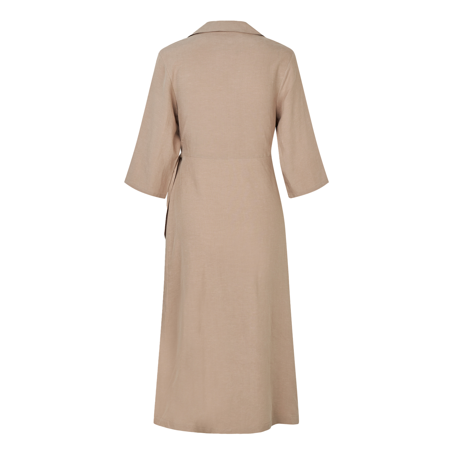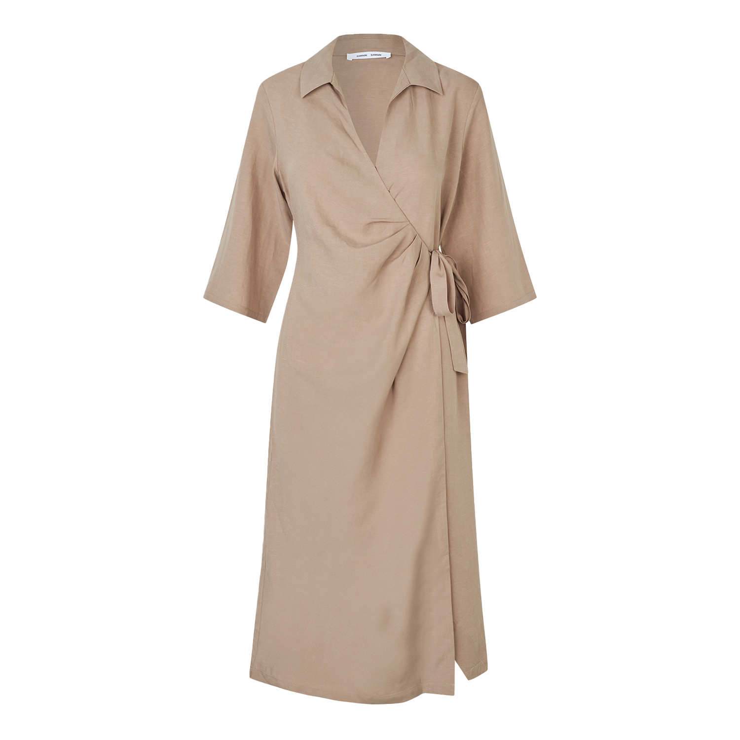 De Sahani Dress in de kleur Greige van het label Samsøe Samsøe is een lange wikkeljurk met een tijdloze uitstraling. Ontworpen met een stijlvolle kraag en driekwartsmouwen. De strik in de taille benadrukt je silhouet op een vrouwelijke en elegante manier. Gemaakt van een hoogwaardige mix van TENCEL™ Lyocell en linnen.