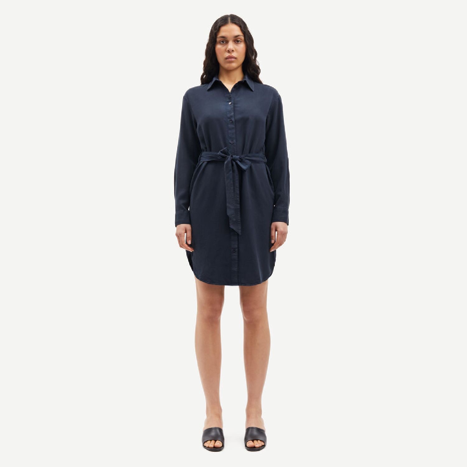 De Samadisoni Dress in de kleur Salute, van het label Samsøe Samsøe. Een comfortabele korte overhemdjurk met verlaagde schouders en lange mouwen. De jurk heeft een puntige kraag, knoopsluiting middenvoor en manchetten, tailleband. Een mooi zomerjurkje met een leuke riem bij de taille, wat de jurk wat eleganter maakt.