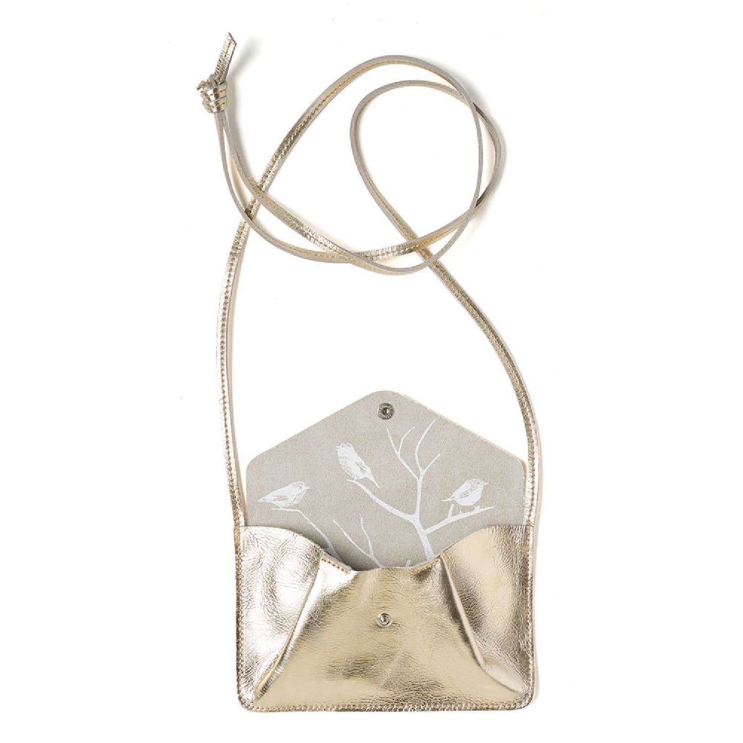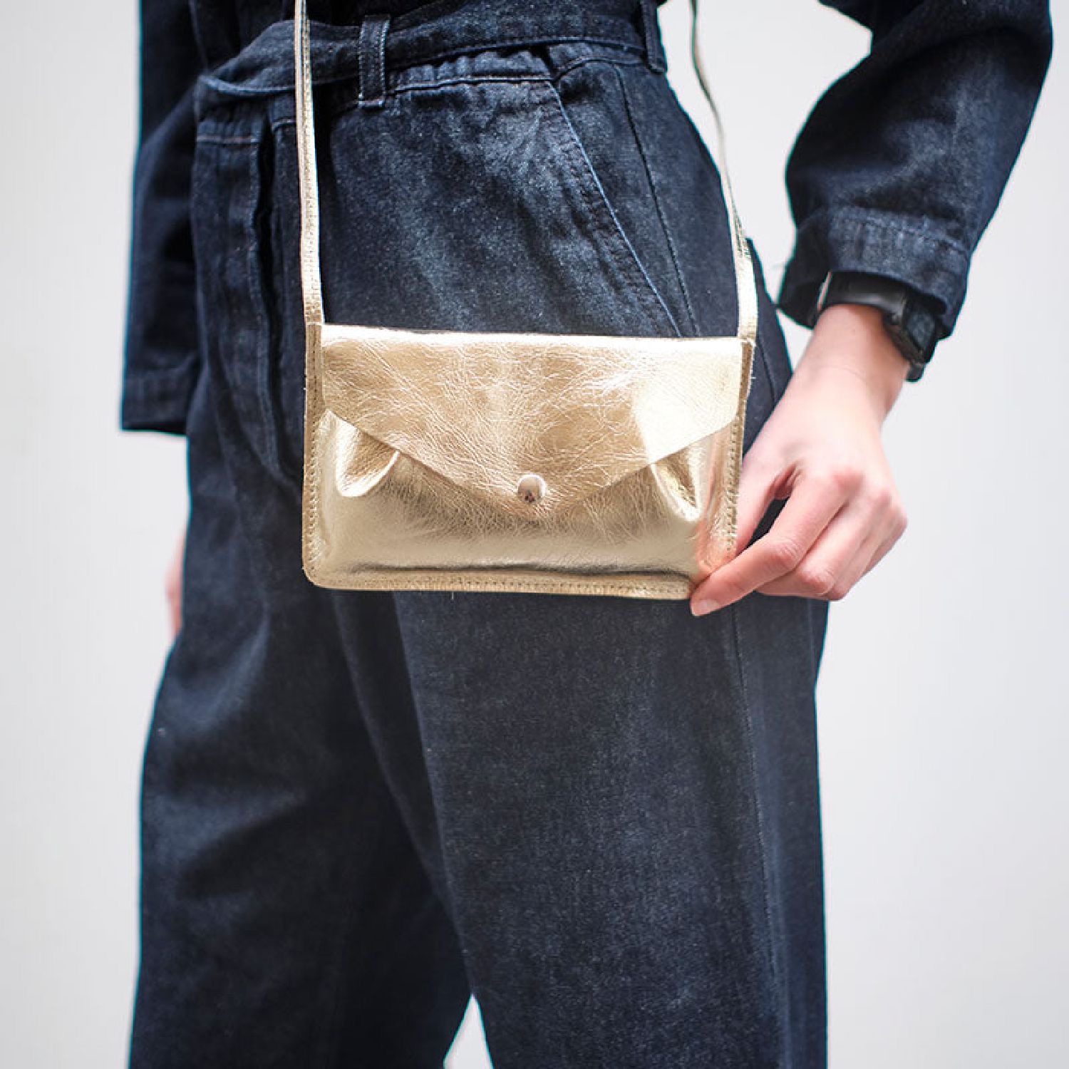Deze goud kleurige schoudertas heeft net voldoende ruimte voor je telefoon, je sleutels en je pinpas. Hij is comfortabel te dragen door de verstelbare schouderband.