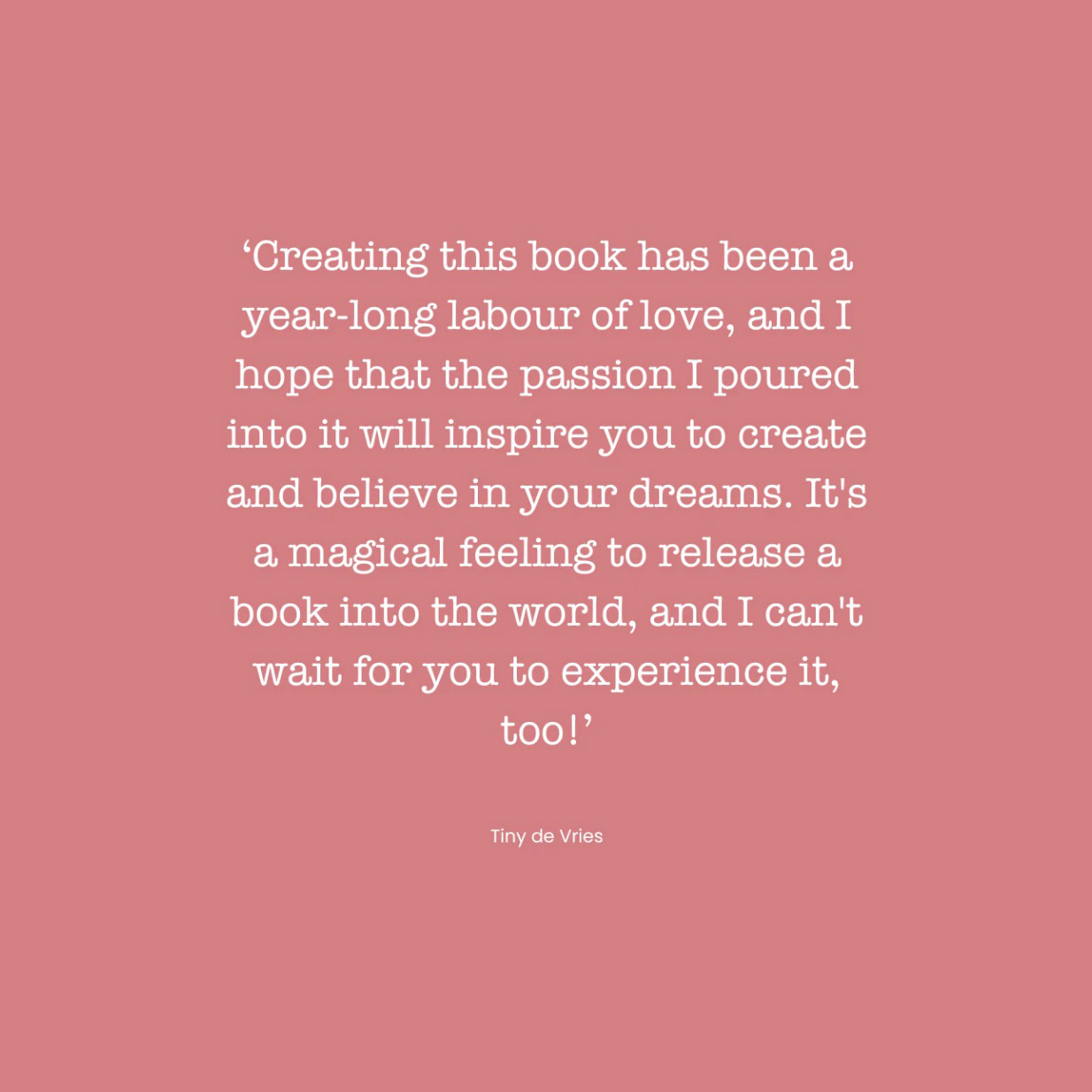 Vanaf jonge leeftijd is creativiteit altijd de drijvende kracht geweest in Tiny’s leven. Na haar studie aan de Hogeschool voor de Kunsten in Utrecht, begon ze aan een reis om de wereld te verkennen en schoonheid te ontdekken van heinde en verre. Haar schilderijen weerspiegelen haar speelse en vrijgevochten aard, waarbij ze de essentie van haar omgeving vastlegt met een scherp oog voor detail en een diepe liefde voor de natuur. In dit boek deelt Tiny haar geheimen om inspiratie te halen uit de wereld om ons heen, zowel thuis als ver weg. Ze laat ons zien hoe we unieke en vintage vondsten, prints, patronen en kunst kunnen gebruiken om een ​​huis te creëren dat eigenzinnig en persoonlijk is.