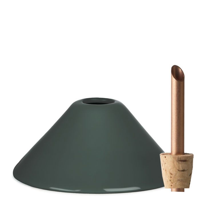 Verwijder de kurk met het koperen mondstukje, om de vaasjes te vullen.