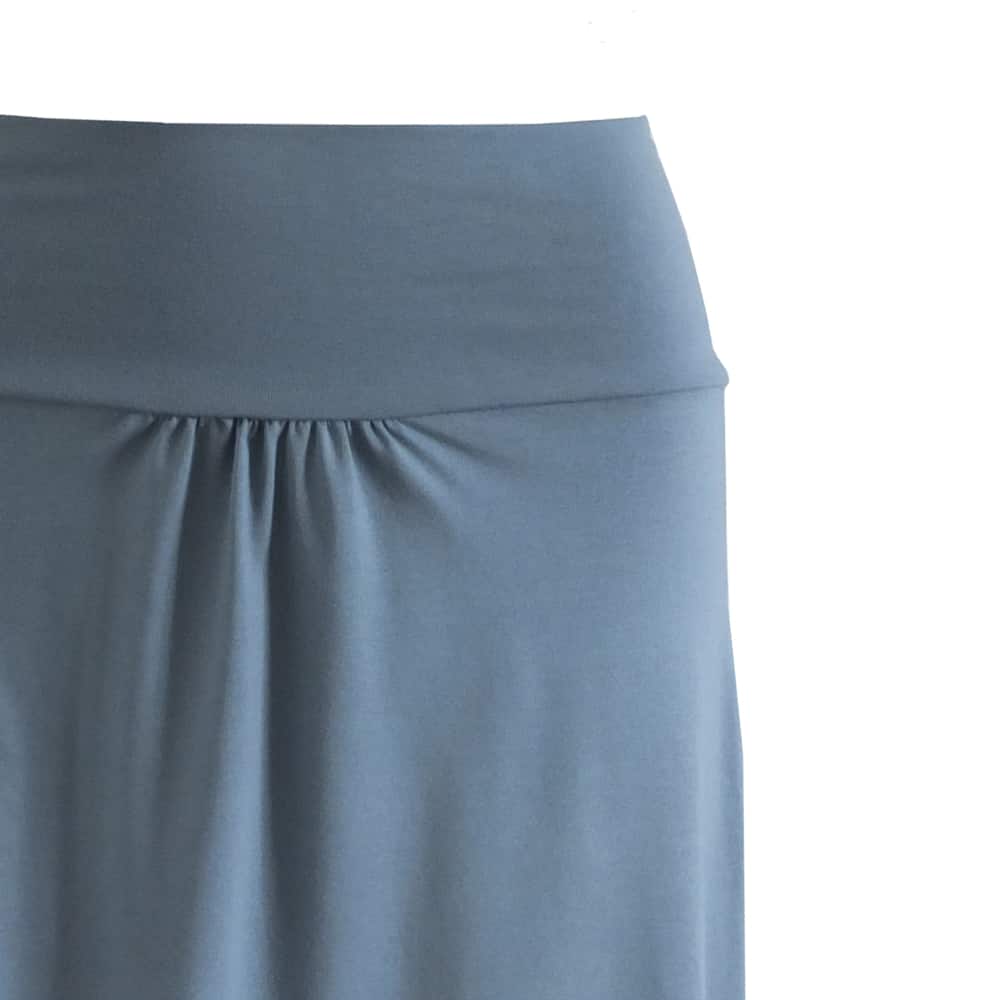 Dit simpele rechte rokje in een fris groene kleur, is heel gemakkelijk overal bij te combineren. Het heeft zowel voor als achter wat rimpeltjes aan een jersey tailleband. Draag hem op de heup of iets meer in de taille.